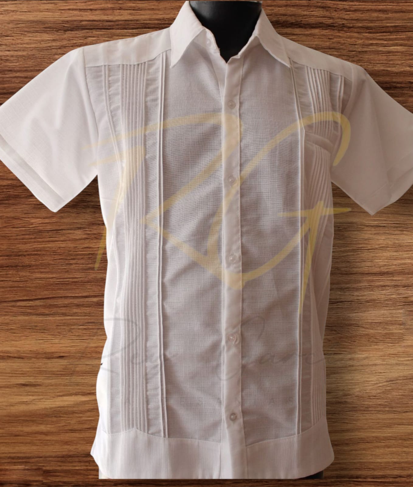 Guayabera ejecutiva en lino blanco, cuello sport y manga corta.